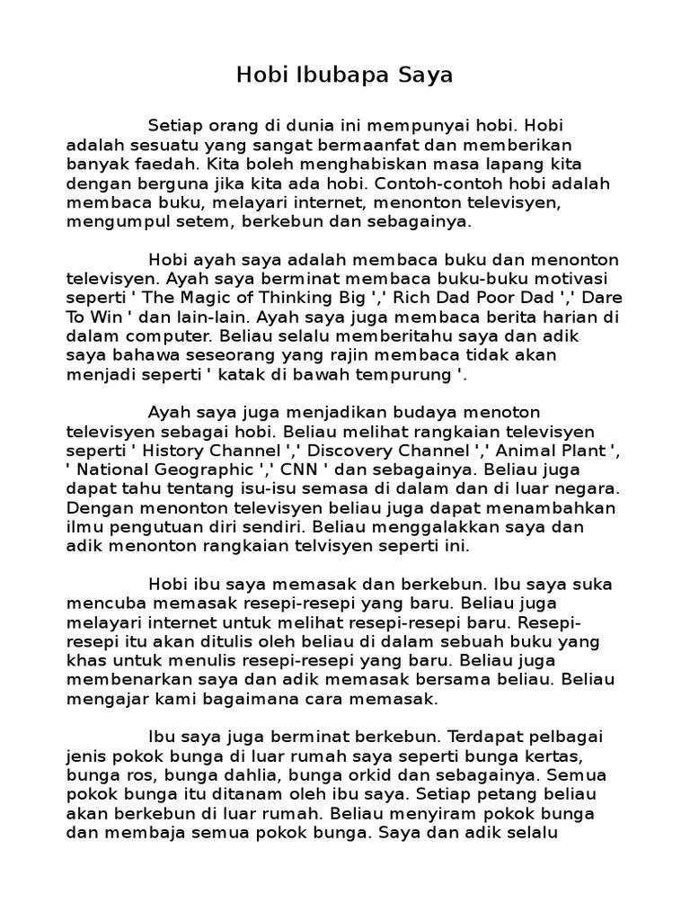 Post a Comment for "Contoh Karangan Hobi Saya - Contoh Karangan UPSR Bahasa Melayu (Senarai Tahun 6)"